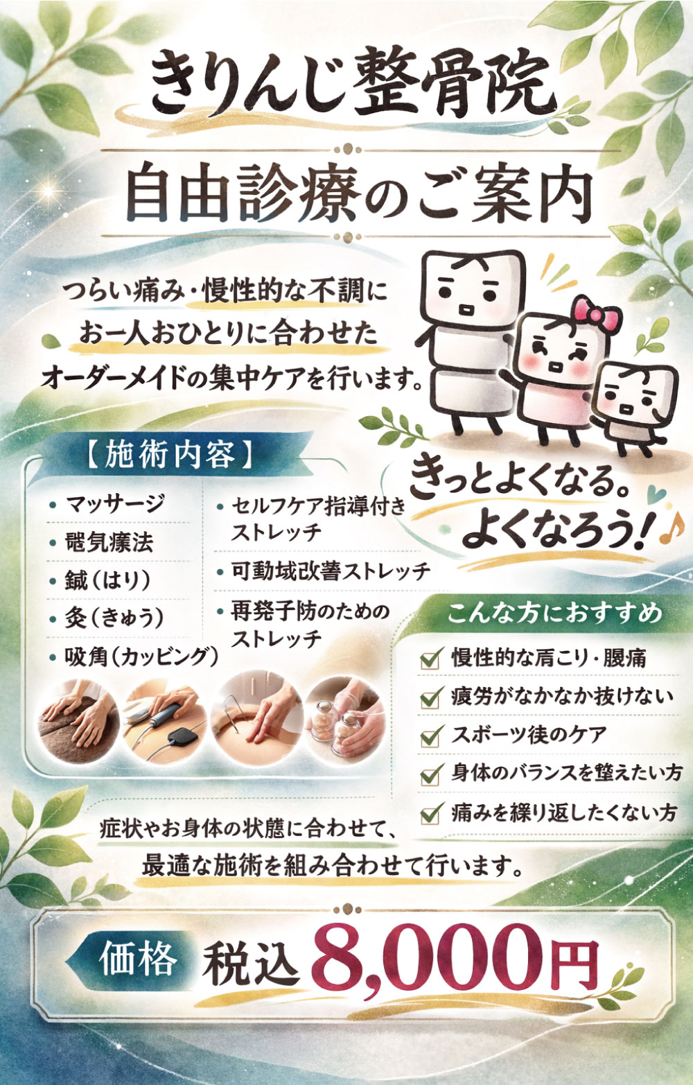<<クリックで詳細 きりんじ整骨院へようこそ!